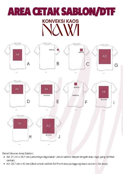 2. Jenis sablon apa saja yang tersedia di Konveksi NAWI? Kami menyediakan berbagai jenis sablon sesuai kebutuhan, mulai dari Plastisol (standar distro yang awet), Rubber (elastis), Discharge (cabut warna), hingga DTF (Direct Transfer Film) untuk desain dengan banyak gradasi warna.